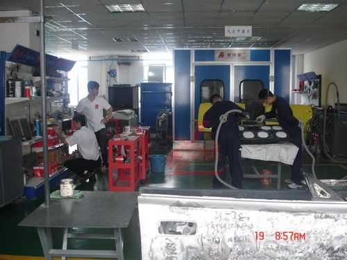 參觀龍神培訓(xùn)中心的汽車鈑噴設(shè)備和工具