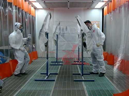 參賽選手統(tǒng)一著裝龍神贊助的噴漆防護進行規(guī)范化的車身噴涂比賽